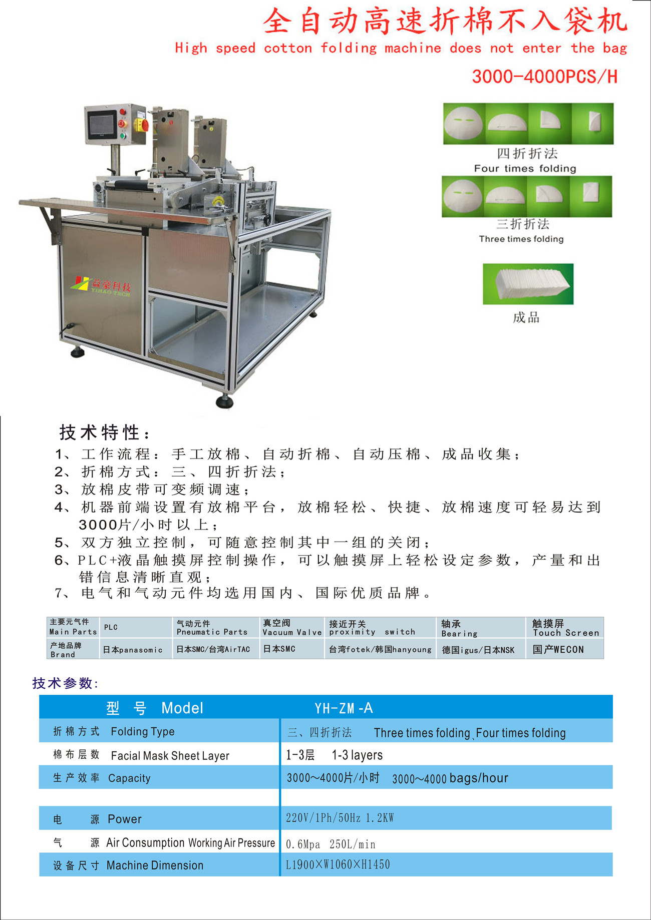 1、工作流程:手工放棉、自動(dòng)折棉、自動(dòng)壓棉、成品收集