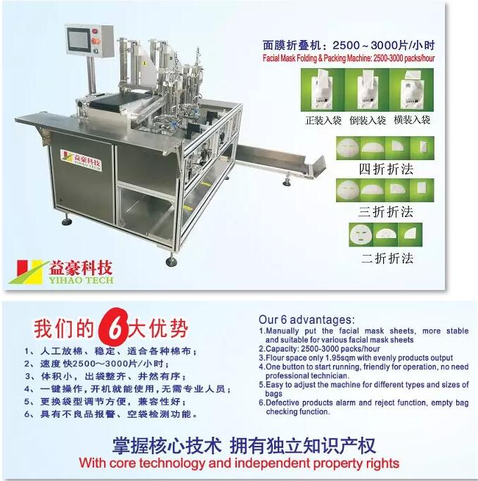 深圳市益豪科技有限公司(以下簡稱益豪科技)是一家集研發設計、生產、銷售服務的專業包裝設備廠家。公司涉及行業有化妝品、食品、日化用品、通訊電子等,主要經營的產品為面膜折疊機(高速折棉機),和同類產品相比,優勢主要體現在是穩定、可靠、速度快、操作簡單、維修少。