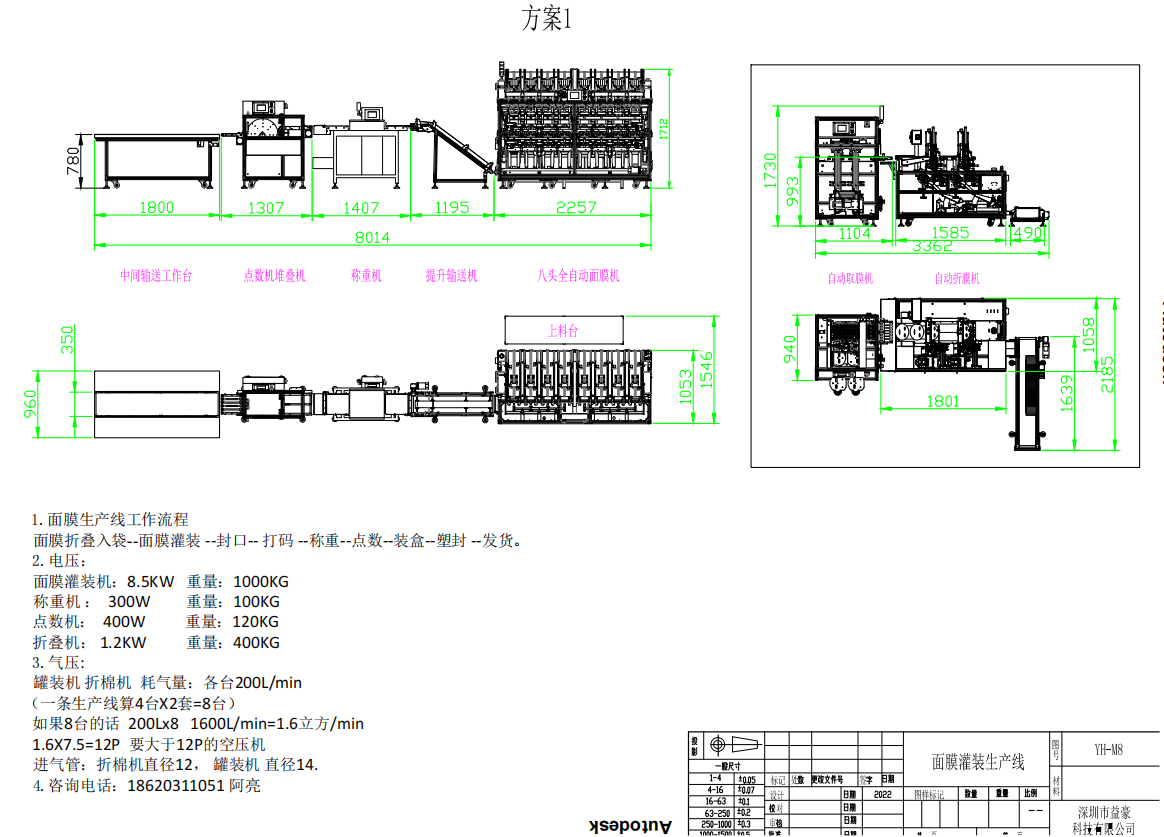 自動取袋、—面膜液充填—排氣—封口——日期打印—成品輸出 .